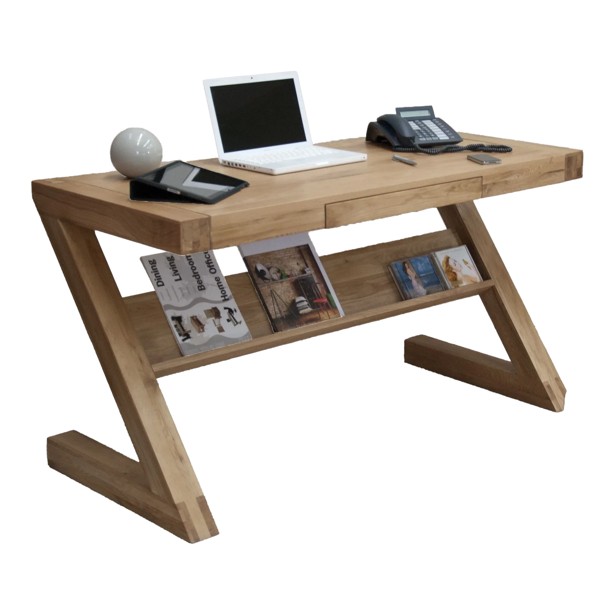 Elevate your workspace with the exquisite Opus Z Style Office Desk. Crafted from 100% high-quality oak, this desk exudes elegance and sophistication. The sleek design features a shallow drawer and a convenient shelf, offering ample storage space while maintaining a clean aesthetic. Finished with a clear lacquer, this desk is not only visually stunning but also built to stand the test of time.