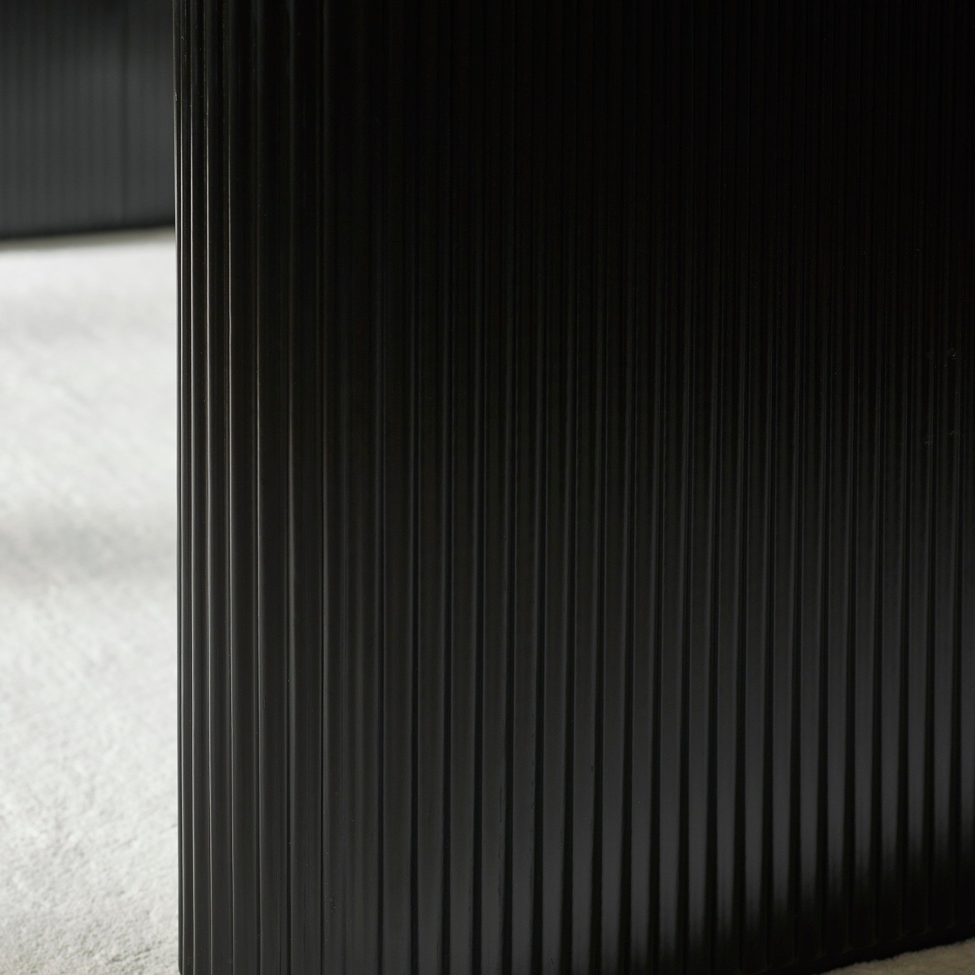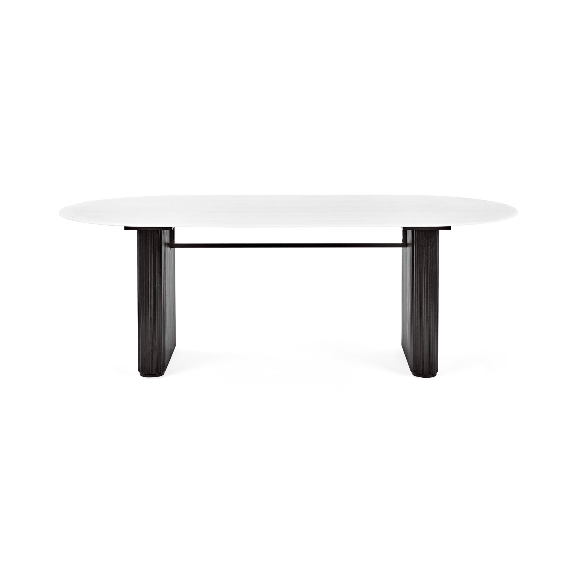 • SCULPTURAL PEDESTAL LEGS: Two bold, fluted black legs add tactile texture and become a striking centerpiece for your dining space.