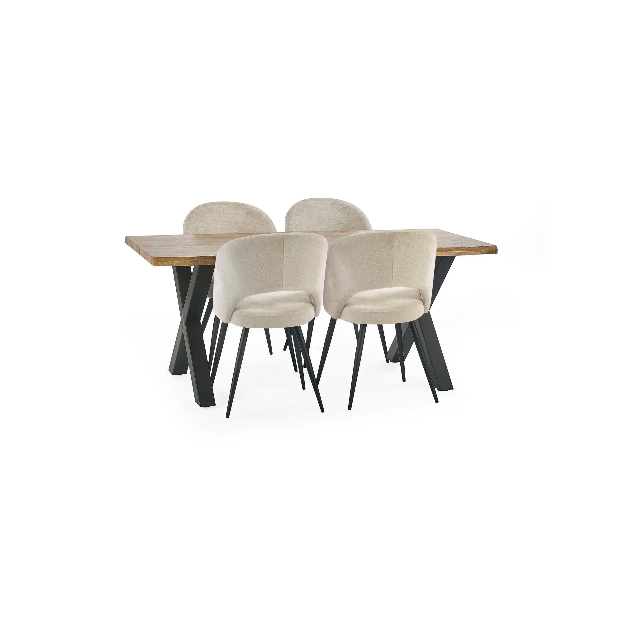 Redefine your dining area with the Harvey Dining Table, where style meets functionality. The oak-effect top, with its elegant waved edge, adds a distinctive charm, complemented by the robust matt black steel crossed legs for a bold, contemporary finish. Ideal for everyday meals or hosting gatherings, this table combines timeless design with practicality to enhance any dining space. Simple assembly is required, so you can have it ready to use quickly and effortlessly.
